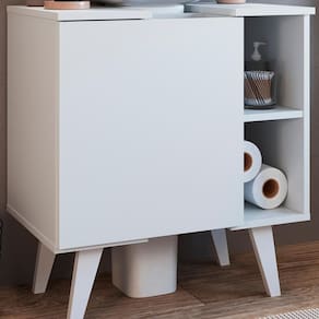 Gabinete Para Banheiro 01 Porta E 4 Nichos B86 Branco Novam Branco