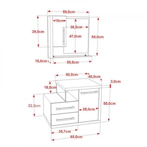 O Kit Legno 650 é um produto compacto, de design contemporâneo e minimalista, projetado para se encaixar no seu espaço, composto por um gabinete com cuba de apoio, detalhe em vidro 10mm e 2 gavetas laterais. A espelheira possui 1 porta, espelho lapidado e 1 prateleira de vidro 10mm, sendo perfeita para organizar suas coisas e fazer parte da decoração do seu banheiro. Acabamento da Cuba: Gel Acabamento da Gaveta: Pintura UV Acabamento da Porta: Pintura UV Acabamento da Prateleira: Vidro Acabamento dos Pés: Acompanha Cuba: Sim Acompanha Lâmpada: Acompanha Tampo: Sim Altura dos Pés: Ambiente Principal: Complexidade da Montagem: Média: pode ser montado por mais de uma pessoa e/ou necessite de maior conhecimento para montagem Cor: Branco/Nogal Cor da Cuba: Branco Cor Flex: Cor Interna: Branco Escala de Brilho: Brilhante Escala de Brilho da Gaveta: Brilhante Escala de Brilho da Porta: Brilhante Escala de Brilho da Prateleira: Brilhante Espessura do Espelho: 3 Formato do Espelho: Retangular Furação para Cuba e Torneira: Não Gaveta com Chave: Não Informações Complementares: Itens Inclusos: 1 Gabinete, 1 Cuba, 1 Espelheira e Manual de Montagem. Linha ou Coleção: Legno 650W Manual de Especificação Técnica: Manual de Montagem e Instalação: https://cdn2.madeiramadeira.com.br/atributo/compace/442888-manual-legno-650-850-siena-m-veis.pdf Material da Cuba: Mármore Sintético Material da Gaveta: MDF/MDP Material da Porta: MDF/MDP Material da Prateleira: Vidro Material do Puxador da Gaveta: Material do Puxador da Porta: Material do Tampo: MDF/MDP Material dos Pés: Material Principal: MDF/MDP Medida da Cuba (C x L x P): 35cm x 33,5cm x 10,5cm Medida do Gabinete (A x L x P): 50cm x 65cm x 45cm Montagem Flex: Necessita Montagem: Sim Origem do Produto: Nacional Pés Reguláveis: Peso: 34,10 kg Peso Máximo por Gaveta: 2 Peso Máximo por Prateleira: 1 Possui Espelheira: Sim Possui Gabinete: Sim Possui Gavetas: 02 Possui iluminação: Não Possui Pés: Suspenso Possui Portas: 01 Possui Rodízio: Não Recomendações de Uso, Manutenção e Limpeza: Para a limpeza, utilize flanela seca ou pano macio levemente umedecido em água. Utilize um pano seco em seguida. Evite contato com produtos químicos (solventes, thinner, acetona, etc) e não utilize nenhum tipo de esponja de aço. Rodízio com Trava: Sapatas Niveladoras: Sistema de Montagem: Parafusos e Buchas. Suporta Até (kg): Tamanho do Espelho (A x L): 47cm x 36cm Tipo de Corrediça da Gaveta: Metálica Telescópica Tipo de Dobradiça/Corrediça da Porta: Metálica Tipo de Gabinete: Gabinete Suspenso Tipo de Madeira Maciça da Gaveta: Tipo de Madeira Maciça da Porta: Tipo de Madeira Maciça da Prateleira: Tipo de Madeira Maciça do Puxador da Gaveta: Tipo de Madeira Maciça dos Pés: Tipo de Porta: Bater Tipo de Puxador da Gaveta: Externo Tipo de Puxador da Porta: Externo