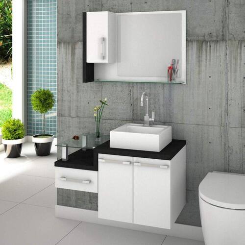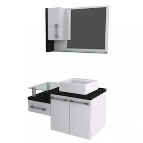 O kit Legno 830 é um produto compacto, de design contemporâneo e minimalista, projetado para se encaixar no seu espaço, composto por um gabinete com cuba de apoio, gaveta lateral e tampo de apoio de vidro 10mm. A espelheira possui 1 porta, espelho lapidado e 1 prateleira de vidro 10mm, sendo perfeita para organizar suas coisas e fazer parte da decoração do seu banheiro. Acabamento da Cuba: Alto Brilho Acabamento da Gaveta: Pintura UV Acabamento da Porta: Pintura UV Acabamento da Prateleira: Vidro Acabamento dos Pés: Acompanha Cuba: Sim Acompanha Lâmpada: Acompanha Tampo: Sim Altura dos Pés: Ambiente Principal: Complexidade da Montagem: Média: pode ser montado por mais de uma pessoa e/ou necessite de maior conhecimento para montagem Cor: Branco/Preto Onix Cor da Cuba: Branco Cor do Produto: Branco/Preto Ônix Cor Flex: Cor Interna: Branco Escala de Brilho: Brilhante Escala de Brilho da Gaveta: Brilhante Escala de Brilho da Porta: Brilhante Escala de Brilho da Prateleira: Brilhante Espessura do Espelho: 3 Formato do Espelho: Retangular Furação para Cuba e Torneira: Não Gaveta com Chave: Não Informações Complementares: Itens Inclusos: 1 Gabinete, 1 Cuba, 1 Espelheira e Manual de Montagem. Linha ou Coleção: Legno 830W Manual de Especificação Técnica: Manual de Montagem e Instalação: https://cdn2.madeiramadeira.com.br/atributo/compace/443174-manual-legno-830-siena-moveis.pdf Material da Cuba: Mármore Sintético Material da Gaveta: MDF/MDP Material da Porta: MDF/MDP Material da Prateleira: Vidro Material do Puxador da Gaveta: Material do Puxador da Porta: Material do Tampo: MDF/MDP Material dos Pés: Material Principal: MDF/MDP Medida da Cuba (C x L x P): 35cm x 33,5cm x 10,5cm Medida da Espelheira (A x L x P): Medida do Gabinete (A x L x P): 51cm x 83cm x 43cm Montagem Flex: Necessita Montagem: Sim Origem do Produto: Nacional Pés Reguláveis: Peso: 35.65 Peso Máximo por Gaveta: 2 Peso Máximo por Prateleira: 3 Possui Espelheira: Sim Possui Gabinete: Sim Possui Gavetas: 01 Possui iluminação: Não Possui Pés: Suspenso Possui Portas: 02 Possui Rodízio: Não Recomendações de Uso, Manutenção e Limpeza: Para a limpeza, utilize flanela seca ou pano macio levemente umedecido em água. Utilize um pano seco em seguida. Evite contato com produtos químicos (solventes, thinner, acetona, etc) e não utilize nenhum tipo de esponja de aço. Rodízio com Trava: Sapatas Niveladoras: Sistema de Montagem: Parafusos e Buchas. Suporta Até (kg): Tamanho do Espelho (A x L): 47cm x 50cm Tipo de Corrediça da Gaveta: Metálica Telescópica Tipo de Dobradiça/Corrediça da Porta: Metálica Tipo de Gabinete: Gabinete Suspenso Tipo de Madeira Maciça: Tipo de Madeira Maciça da Gaveta: Tipo de Madeira Maciça da Porta: Tipo de Madeira Maciça da Prateleira: Tipo de Madeira Maciça do Puxador da Gaveta: Tipo de Madeira Maciça dos Pés: Tipo de Porta: Bater Tipo de Puxador da Gaveta: Externo Tipo de Puxador da Porta: Externo