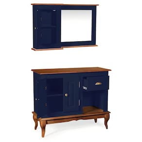 Gabinete para Banheiro 2 Portas com Espelheira Dália 3058 - Azul Petróleo/Imbuia Glazer