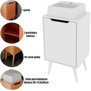 • Material: Gabinete: Estrutura em MDP / Cuba: Mármore sintético