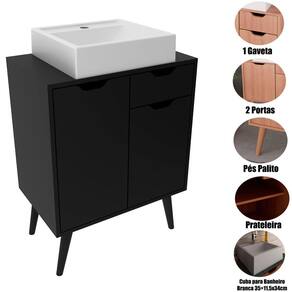 Gabinete para Banheiro 60 cm 2 Portas com Cuba Meire - Preto