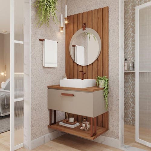 Conjunto para Banheiro com Gabinete, Painel Ripado e Espelheira Mari Espresso Móveis é formado por Gabinete para Banheiro 100% MDF, Cuba em Mármore Sintético, Painel Ripado em MDF e Espelheira em MDF. Com amplo espaço interno, seu design e características garantem melhor e maior durabilidade ao produto. Aproveite e adquira já o Conjunto Mari Espresso Móveis para deixar o seu ambiente ainda mais charmoso, sofisticado e elegante. Altura do Conjunto: 117 cm Ambiente: null Ambiente Principal: Banheiro Cor: Cappuccino Informação Complementar: 1x Espelheira Para Banheiro Alça em Couro Lua CappuccinoLargura: 60 cmAltura: 60 cmPeso: 4,1 kgProfundidade: 1,5 cmNecessita Montagem: Não1x Painel Ripado 60cm FreijóLargura: 61,1 cmAltura: 117 cmPeso: 12,6 kgProfundidade: 2,7 cmNecessita Montagem: Não1x Gabinete Para Banheiro 60cm Mari CappuccinoLargura: 61,3 cmAltura: 73 cmPeso: 25,1 kgProfundidade: 45,1 cmNecessita Montagem: Não Material Principal: MDF