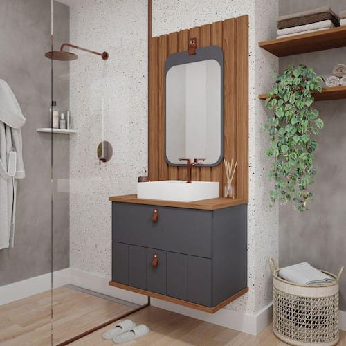 Grande ou pequeno, o banheiro da sua casa tem que ser prático, organizado e aconchegante. Um item que não pode faltar, no entanto, é inspiração. A inspiração para o Gabinete Poli vem da vida, da marromza e do conforto, que são imprescindíveis em nosso dia a dia. O Gabinete Poli possui amplo espaço interno om desgin moderno e é ideal para quem procura espaço e beleza. Aproveite e adquira já o seu Gabinete Poli para deixar seu banheiro ainda mais moderno, sofisticado e elegante. Acabamento da Cuba: Polido Acabamento da Gaveta: Pintura UV Acabamento da Porta: Pintura UV Acompanha Cuba: Sim Acompanha Parafusos Para Fixação Na Parede: Sim Ambiente Principal: Banheiro Cor: Titanium Cor da Cuba: Branca Cor do Produto: Titanium Cor Flex: Não Cor Interna: Titanium Escala de Brilho: Fosco Escala de Brilho da Gaveta: Fosco Escala de Brilho da Porta: Fosco Gaveta com Chave: Não Itens Inclusos: 01 Gabinete e 01 Cuba Linha ou Coleção: Decor Manual de Especificação Técnica: https://cdn2.madeiramadeira.com.br/atributo/mgm-moveis/1258945-7898942628962-manual.pdf Manual de Montagem e Instalação: https://cdn2.madeiramadeira.com.br/atributo/mgm-moveis/1258944-7898942628962-manual.pdf Material da Cuba: Mármore Sintético Material da Gaveta: MDF Material da Porta: MDF Material do Puxador da Gaveta: Couro Material do Puxador da Porta: Couro Material do Tampo: MDF Material Principal: MDF Medida da Cuba (C x L x P): 37 X 40 X 9,8 cm Medida do Recorte Para Misturador: 3.2 Montagem Flex: Não Necessita Montagem: Não Origem do Produto: Nacional Peso: 28,4 kg Peso Máximo por Gaveta: 3 kg Possui Nichos: Não Possui Pés: Não Possui Portas: 01 Possui Prateleiras: Não Possui Recorte No Tampo Para Cuba: Não Possui Recorte No Tampo Para Misturador: Sim Possui Sifão: Não Possui Tampo: Sim Recomendações de Uso, Manutenção e Limpeza: Utilizar pano úmido Suporta Até (kg): 15 kg Tipo de Corrediça da Gaveta: Metálica Telescópica Tipo de Dobradiça/Corrediça da Porta: Metálica Tipo de Gabinete: Gabinete Suspenso Tipo de Móvel para o Banheiro: Gabinete de Banheiro Tipo de Porta: Basculante Tipo de Puxador da Gaveta: Externo Tipo de Puxador da Porta: Externo Válvula indicada: N/D