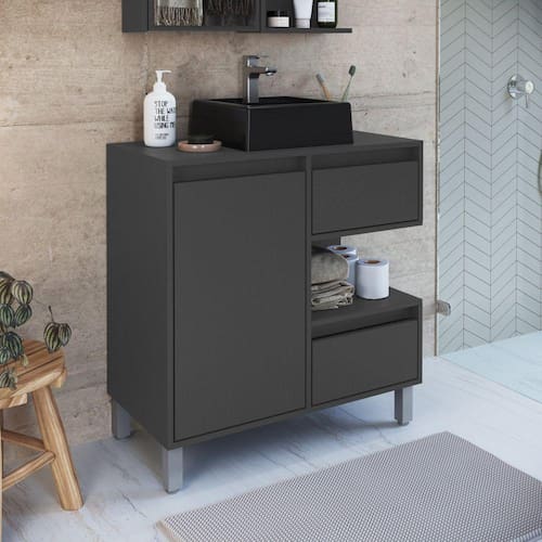 Gabinete para Banheiro 80cm 2 Gavetas 1 Porta 1 Nicho Paula Grafite - Preto