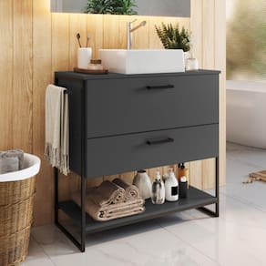 Altura do Conjunto: 79 cm Ambiente: null Ambiente Principal: Banheiro Cor: Preto/Grafite Informação Complementar: 1x Gabinete para Banheiro 80cm P1028 Sem Cuba Preto/Grafite Largura: 80 Altura: 79 Peso: 33 Profundidade: 37 Necessita Montagem: Sim