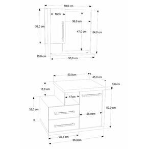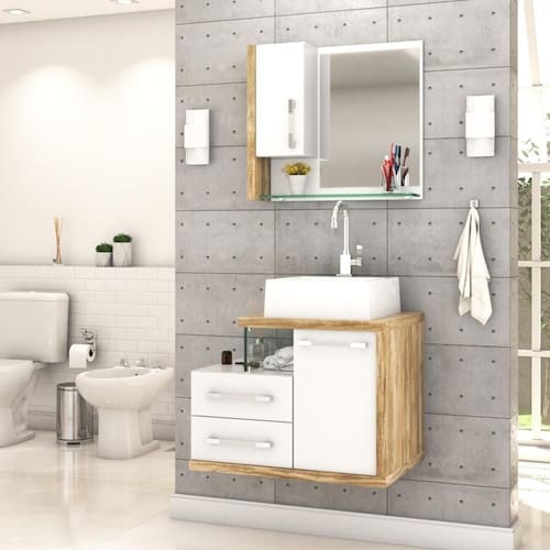 Sobre o ProdutoConjunto Balcão C/Cuba Q355 e Espelheira Legno 650 Perffect AcetinadoDescrição do Produto:O Conjunto (Balcão + Cuba + Espelheira) Legno KTLG650 é um produto compacto, de design contemporâneo e minimalista, projetado para se encaixar no seu espaço, composto por um gabinete com cuba de apoio, 02 gavetas laterais e detalhe em vidro 10mm. A espelheira possui 01 porta, espelho lapidado e 01 prateleira de vidro 10mm, sendo perfeita para organizar suas coisas e fazer parte da decoração do seu linha Legno combina a leveza do branco e detalhes em vidro com tons amadeirados, conferindo uma personalidade contemporânea aos móveis de design minimalista e traços retos. Produtos que aliam funcionalidade e praticidade ao seu dia a dia são características marcantes desta coleção!Itens Inclusos:1 Conjunto Balcão C/Cuba e EspelheiraDimensões dos Produtos:Gabinete: 65 x 45 x 50 cmEspelheira: 59 x 15 x 54 cmCuba 35 x 35 x 11,5 cmInformações Logísticas (Comp. X Prof. X Alt.) 70 x 50 x 56 cm - Peso: 28,04 63 x 19 x 59 cm - Peso: 9,065 KgPeso Total: 37,10 KgObservações:Não acompanha acessórios decorativos. Imagens meramente ilustrativas.Informações Técnicas / Características:- Cor do Produto: Perffect Acetinado - Marca: Compace- Modelo: KTLG650- Linha: Legno- Material: Mdp - Acabamento: Perffect Acetinado- Escala de Brilho: Fosco- Fita de Borda: Pvc- Possui Portas: 2- Tipo de Porta: Bater- Tipo da Dobradiça: Metálica- Possui Gavetas: 2- Tipo da Corrediça: Telescópica- Possui Chave: Não- Peso Máximo por Gaveta: 3 kg- Material do Puxador: Abs- Possui Prateleiras: 1- Peso Máximo por Prateleira: 1 kg- Possui Pés: Não, suspenso - Possui Espelho: Sim- Possui Vidro: Sim- Acompanha Cuba / Lavatório: Sim, de Mármore Sintético- Furação para Cuba / Lavatório: Não- Tipo da Cuba: Apoio- Cor da Cuba: Branca- Suporta Até (kg): 20 kg - Peso Lí.: 34,11Kg- Recomendações de Uso, Manutenção e Limpeza: Para a limpeza, utilize flanela seca ou pano macio levemente umedecido em água. Utilize um pano seco em seguida. Evite com produtos químicos (solventes, thinner, acetona, etc) e não utilize nenhum tipo de esponja de aço.- Necessita de Montagem: Sim / Acompanha Manual de Montagem- Complexidade da Montagem: Média: pode ser montado por mais de uma pessoa e/ou necessite de maior conhecimento para montagem.- Garantia: 6 meses Material: Mdp | Acabamento: Perffect Acetinado | Escala de Brilho: Fosco | Fita de Borda: Pvc | Possui Portas: 1 | Tipo de Porta: Bater | Tipo da Dobradiça: Metálica | Comprimento: 65 | Limite de unidades por venda: É possível comprar até 1 unidade por venda. | Quantidade máxima de pedido: 1 | Largura: 45 | Altura: 53 | Profundidade: 45 | Preço tabelado: 628 | Cor: Multicolorido | Certificação de teste externa: Não Aplicável | Baterias são necessárias?: false | Palavras-chave de Pesquisa: Não aplicável | Fonte de energia: Não aplicável | Fabricante: Compace | da peça: | Componentes incluídos: | Exige montagem: | Principais Características do Produto 2: | Peso do item: | Dimensões do item P x L x A: | Principais Características do Produto 1: | Principais Características do Produto 0: | Is Fragile: | Quantidade de itens: | do modelo: | de caixas: Cor: Branco Chess C/Carvalho
