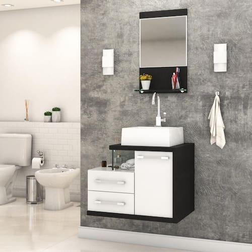 Sobre o ProdutoConjunto Balcão C/Cuba Q355 e Espelheira Legno 651 Perffect AcetinadoDescrição do Produto:O Conjunto (Balcão + Cuba + Espelheira) Legno KTLG651 é um produto compacto, de design contemporâneo e minimalista, projetado para se encaixar no seu espaço, composto por um gabinete com cuba de apoio, 02 gavetas laterais e detalhe em vidro 10mm. A espelheira possui espelho lapidado e 01 prateleira de vidro 10mm, sendo perfeita para organizar suas coisas e fazer parte da decoração do seu linha Legno combina a leveza do branco e detalhes em vidro com tons amadeirados, conferindo uma personalidade contemporânea aos móveis de design minimalista e traços retos. Produtos que aliam funcionalidade e praticidade ao seu dia a dia são características marcantes desta coleção!Itens Inclusos:1 Conjunto Balcão C/Cuba e EspelheiraDimensões dos Produtos:Gabinete: 65 x 45 x 50 cmEspelheira: 37,5 x 11,5 x 67,5 cmCuba 35 x 35 x 11,5 cmInformações Logísticas (Comp. X Prof. X Alt.) 70 x 50 x 56 cm - Peso: 32,42 KgPeso Total: 32,42 KgObservações:Não acompanha acessórios decorativos. Imagens meramente ilustrativas.Informações Técnicas / Características:- Cor do Produto: Perffect Acetinado - Marca: Compace- Modelo: KTLG651- Linha: Legno- Material: Mdp - Acabamento: Perffect Acetinado- Escala de Brilho: Fosco- Fita de Borda: Pvc- Possui Portas: 1- Tipo de Porta: Bater- Tipo da Dobradiça: Metálica- Possui Gavetas: 2- Tipo da Corrediça: Telescópica- Possui Chave: Não- Peso Máximo por Gaveta: 3 kg- Material do Puxador: Abs- Possui Prateleiras: 1 - Possui Pés: Não, suspenso - Possui Espelho: Sim- Possui Vidro: Sim- Acompanha Cuba / Lavatório: Sim, de Mármore Sintético- Furação para Cuba / Lavatório: Não- Tipo da Cuba: Apoio- Cor da Cuba: Branca- Suporta Até (kg): 20 kg - Peso Lí.: 30,37Kg- Recomendações de Uso, Manutenção e Limpeza: Para a limpeza, utilize flanela seca ou pano macio levemente umedecido em água. Utilize um pano seco em seguida. Evite com produtos químicos (solventes, thinner, acetona, etc) e não utilize nenhum tipo de esponja de aço.- Necessita de Montagem: Sim / Acompanha Manual de Montagem- Complexidade da Montagem: Média: pode ser montado por mais de uma pessoa e/ou necessite de maior conhecimento para montagem.- Garantia: 6 meses Material: Mdp | Acabamento: Perffect Acetinado | Escala de Brilho: Fosco | Fita de Borda: Pvc | Possui Portas: 1 | Tipo de Porta: Bater | Tipo da Dobradiça: Metálica | Tipo de Produto: Bancada para Banheiro | Limite de unidades por venda: É possível comprar até 1 unidade por venda. | Fabricante: Compace | Quantidade máxima de pedido: 1 | Comprimento: 65 | Largura: 45 | Altura: 53 | Profundidade: 45 | Preço tabelado: | Cor: Multicolorido | Certificação de teste externa: Não Aplicável | Baterias são necessárias?: false | Palavras-chave de Pesquisa: Não aplicável | Fonte de energia: Não aplicável | Peso do item: | Componentes incluídos: | Exige montagem: | da peça: | Principais Características do Produto 2: | Dimensões do item P x L x A: | Principais Características do Produto 1: | Is Fragile: | Principais Características do Produto 0: | de caixas: | do modelo: | Quantidade de itens: Cor: Branco Chess C/Preto Ônix