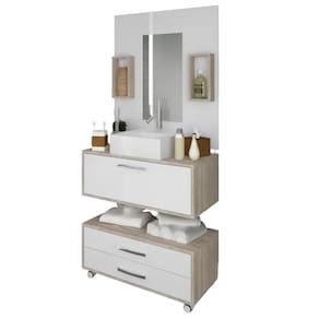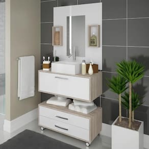 Renove seu banheiro com o Gabinete para Banheiro da Arte Cas, um conjunto moderno e funcional que une praticidade e sofisticação. Com Cuba de Mármore Sintético, 1 Porta Basculante, 2 Gavetas e 2 Nichos, ele oferece organização eficiente para seus itens de higiene e beleza. Seu acabamento elegante em Branco/Marrom combina perfeitamente com diversos estilos de decoração.