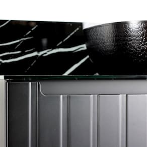 O tampo de vidro temperado serigrafado Nero Marquina não só confere um visual elegante e sofisticado, como também proporciona resistência e facilidade de limpeza. As portas ripadas em MDF são um detalhe de design que acrescenta um toque único e moderno, garantindo que o Gabinete Armani se destaque em qualquer ambiente.