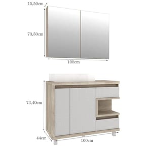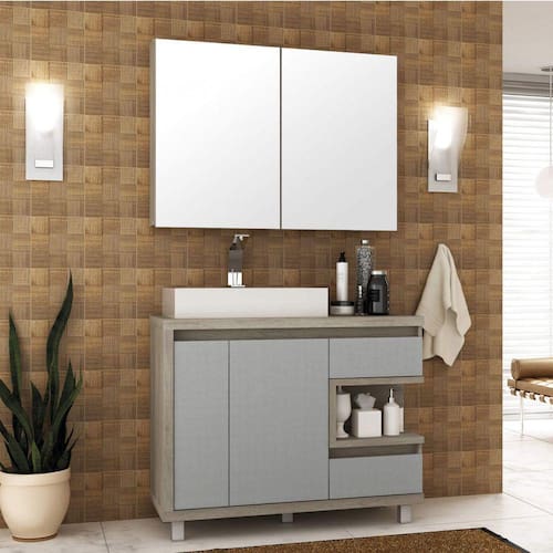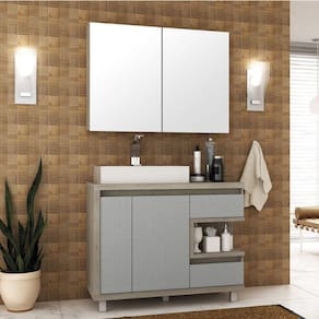 Seu banheiro merece o que marromhor se adapta a suas necessidades e o torna linda ao mesmo tempo, não é mesmo? Com o Conjunto Malbec vai ser simples conquista-lo. Composto por 1 gabinete, 1 cuba e 1 espelho, contém as peças ideais para manter produtos de higiene sempre à mão e também para auxiliar na hora de se arrumar todas as manhãs. Este produto já é enviado totalmente montado, basta apenas fazer as instalações hidráulicas e pronto, é possível utilizá-lo em pouco tempo. Acessórios como válvula, cifão, torneira e outros não acompanham produto. Acabamento da Cuba: Alto Brilho Acabamento da Gaveta: BP Acabamento da Porta: BP Acabamento da Prateleira: BP Acabamento dos Pés: ABS Acompanha Cuba: Sim Acompanha Lâmpada: Acompanha Tampo: Sim Altura dos Pés: 7 Ambiente Principal: Complexidade da Montagem: Cor: Barrique/Argento Cor da Cuba: Branco Cor do Produto: Barrique/Argento Cor Flex: Cor Interna: Escala de Brilho: Fosco Escala de Brilho da Gaveta: Fosco Escala de Brilho da Porta: Fosco Escala de Brilho da Prateleira: Fosco Espessura do Espelho: 155 Formato do Espelho: Retangular Furação para Cuba e Torneira: Sim Gaveta com Chave: Não Informações Complementares: Itens Inclusos: Espelho, Cuba, Balcão, kit de instalação e Manual. Linha ou Coleção: Malbec Manual de Especificação Técnica: Manual de Montagem e Instalação: https://cdn2.madeiramadeira.com.br/atributo/m-veis-bosi/524189-linha-malbec.pdf Material da Cuba: Mármore Sintético Material da Gaveta: MDF Material da Porta: MDF Material da Prateleira: MDF Material do Puxador da Gaveta: Material do Puxador da Porta: Material do Tampo: MDF Material dos Pés: ABS Material Principal: MDF Medida da Cuba (C x L x P): 11,5cm x 57cm x 38,5cm Medida da Espelheira (A x L x P): Medida do Gabinete (A x L x P): 73,4cm x 100cm x 44cm Montagem Flex: Necessita Montagem: Não Origem do Produto: Nacional Pés Reguláveis: Sim Peso: 92.87 Peso Máximo por Gaveta: 5 Peso Máximo por Prateleira: 5 Possui Espelheira: Sim Possui Gabinete: Sim Possui Gavetas: 03 Possui iluminação: Não Possui Pés: 05 Possui Portas: 03 Possui Rodízio: Não Recomendações de Uso, Manutenção e Limpeza: Limpar com flanela ou pano macio seco, não utilizar produtos abrasivos, desengordurantes, álcool ou solvente. Não expor o produto diretamente à luz solar e à umidade. Rodízio com Trava: Sapatas Niveladoras: Não Sistema de Montagem: Suporta Até (kg): Tamanho do Espelho (A x L): 73,5cm x 100cm Tipo de Corrediça da Gaveta: Metálica Telescópica Tipo de Dobradiça/Corrediça da Porta: Aço Tipo de Gabinete: Tipo de Madeira Maciça: Tipo de Madeira Maciça da Gaveta: Tipo de Madeira Maciça da Porta: Tipo de Madeira Maciça da Prateleira: Tipo de Madeira Maciça do Puxador da Gaveta: Tipo de Madeira Maciça dos Pés: Tipo de Porta: Bater Tipo de Puxador da Gaveta: Não Contém Tipo de Puxador da Porta: Não Contém