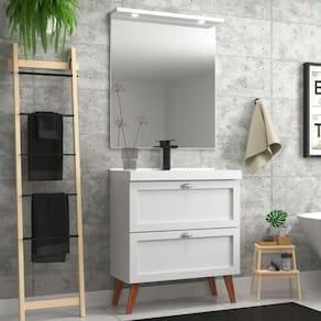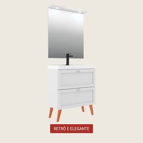 Gabinete para Banheiro com Cuba e Espelheira 80cm Retro Mdf Branco Milano - On Móveis