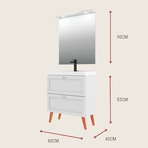 É o caso do nosso conjunto para banheiro Milano, com suas dimensões de 80cm de largura, 63cm de altura e 40cm de profundidade, além de fazer parte da decoração é uma das peças mais funcionais da casa, oferecendo espaço extra de armazenamento e ajudando a manter o banheiro sempre organizado. Produzido 100% em MDF, conta com 3 gavetas espaçosas sendo uma delas interna e um kit de pés de madeira maciça (20cm de altura) que dá um toque de delicadeza ao produto.