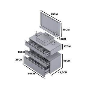 *PRODUTO TOTALMENTE RESISTENTE A ÚMIDADE E RESPINGOS DE ÁGUA! Acabamento da Cuba: Pintura UV Acabamento da Gaveta: Pintura UV Acabamento da Prateleira: Vidro Acompanha Cuba: Sim Acompanha Tampo: Sim Ambiente Principal: Banheiro codigo_ean: 7909903230619 Cor: Branco Cor da Cuba: Branco Cor do Produto: Branco Cor Interna: Rústico Escala de Brilho: Fosco Escala de Brilho da Gaveta: Brilhante Escala de Brilho da Prateleira: Brilhante Espessura do Espelho: 3 mm Formato do Espelho: Retangular Furação para Cuba e Torneira: Sim Gaveta com Chave: Não Informações Complementares: Produto vai montado. Não acompanha parafusos e buchas para a instalação. Itens Inclusos: Gabinete + cuba + espelheira Linha ou Coleção: Linha Safira Manual de Montagem e Instalação: https://product-hub-prd.madeiramadeira.com.br/821771/documents/cbc587b7-b7c1-4292-af6b-595ca1f4449f1147565contarinimOveis.pdf Material da Cuba: Mármore Sintético Material da Gaveta: MDF Material da Prateleira: Vidro Material do Tampo: MDF Material Principal: MDF Medida da Cuba (C x L x P): 33,5 x 10,5 x 33,5 Medida da Espelheira (A x L x P): 40 x 75 x 10 Medida do Gabinete (A x L x P): 17 + 45 x 80 x 42,5 Necessita Montagem: Não Origem do Produto: Nacional Peso: 29 kg Peso Máximo por Gaveta: 10 kg Peso Máximo por Prateleira: 5 kg Possui Espelheira: Sim Possui Gabinete: Sim Possui iluminação: Não Possui Pés: Não Possui Portas: Não Possui Rodízio: Sim Produto Montado: Não Recomendações de Uso, Manutenção e Limpeza: A limpeza deve ser feita com pano úmido e liso. Não deve ser utilidade materiais ásperos ou jatos de água diretamente sob o produto. Rodízio com Trava: Sim Suporta Até (kg): 30 kg Tamanho do Espelho (A x L): 35 x 70 Tipo de Corrediça da Gaveta: Metálica Simples Tipo de Puxador da Gaveta: Embutido Marca: Contarini