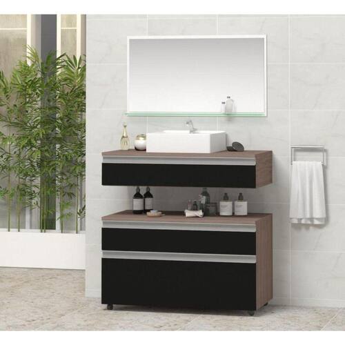 *PRODUTO TOTALMENTE RESISTENTE A ÚMIDADE E RESPINGOS DE ÁGUA! Acabamento da Cuba: Pintura UV Acabamento da Gaveta: Pintura UV Acabamento da Prateleira: Vidro Acompanha Cuba: Sim Acompanha Tampo: Sim Ambiente Principal: Banheiro codigo_ean: 7909903235614 Cor: Preto Cor da Cuba: Branco Cor do Produto: Preto Cor Interna: Rústico Escala de Brilho: Fosco Escala de Brilho da Gaveta: Brilhante Escala de Brilho da Prateleira: Brilhante Espessura do Espelho: 3 mm Formato do Espelho: Retangular Furação para Cuba e Torneira: Sim Gaveta com Chave: Não Informações Complementares: Produto vai montado. Não acompanha parafusos e buchas para a instalação. Itens Inclusos: Gabinete + cuba + espelheira Linha ou Coleção: Linha Safira Manual de Montagem e Instalação: https://product-hub-prd.madeiramadeira.com.br/821766/documents/236714d8-193d-4a59-b196-7fc2735630bb1147561contarinimOveis.pdf Material da Cuba: Mármore Sintético Material da Gaveta: MDF Material da Prateleira: Vidro Material do Tampo: MDF Material Principal: MDF Medida da Cuba (C x L x P): 33,5 x 10,5 x 33,5 Medida da Espelheira (A x L x P): 40 x 75 x 10 Medida do Gabinete (A x L x P): 17 + 45 x 80 x 42,5 Necessita Montagem: Não Origem do Produto: Nacional Peso: 29 kg Peso Máximo por Gaveta: 10 kg Peso Máximo por Prateleira: 5 kg Possui Espelheira: Sim Possui Gabinete: Sim Possui iluminação: Não Possui Pés: Não Possui Portas: Não Possui Rodízio: Sim Produto Montado: Não Recomendações de Uso, Manutenção e Limpeza: A limpeza deve ser feita com pano úmido e liso. Não deve ser utilidade materiais ásperos ou jatos de água diretamente sob o produto. Rodízio com Trava: Sim Suporta Até (kg): 30 kg Tamanho do Espelho (A x L): 35 x 70 Tipo de Corrediça da Gaveta: Metálica Simples Tipo de Puxador da Gaveta: Embutido Marca: Contarini