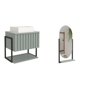 Gabinete para Banheiro com Cuba e Espelheira 85cm MDF Helsing Espresso Móveis Pistache - Verde