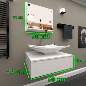 O Bancada Madri 50 Branco C/Cuba oferece um design moderno, com seus componentes fabricados em metal, tonalidade prateada. Este modelo é ideal para quem quer economizar sem deixar de adquirir artigos de luxo. É aplicável em banheiros e/ou lavabos, sua estética moderna e luxuosa oferece qualidade, resistência e praticidade. Produto: Conjunto Madri 50 Cômodo Indicado: Banheiros Local(is) Indicado(s): Banheiro/ Lavabos Marca: Gabinetto Linha: Luxo Produtos que compõem o Conjunto: 01 Bancada 01 Cuba Branca 01 Espelheira Borda Branca (COM ESPELHO) --------------------------------------------------------------------------------------------------------- MEDIDAS LAVABO/BANCADA: COMPRIMENTO: 50 CM ALTURA:15 CM PROFUNDIDADE: 44 CM --------------------------------------------------------------------------------------------------------- MEDIDA ESPELHEIRA: COMPRIMENTO: 50 CM ALTURA: 44 CM --------------------------------------------------------------------------------------------------------- PRATELEIRA: COMPRIMENTO: 45 CM PROFUNDIDADE: 9 CM CUBA: 41 X 35 CM --------------------------------------------------------------------------------------------------------- MATERIAL DO MÓVEL: MDF/ MDP --------------------------------------------------------------------------------------------------------- NÃO ACOMPANHA OS PARAFUSOS E BUCHAS, FICA A CRITÉRIO DO CLIENTE ADQUIRIR A MELHOR OPÇÃO PARA SUA PAREDE A BANCADA NÃO ABRE, NÃO É PORTA E NEM GAVETA, SE TRATA APENAS DE UM DETALHE NA BANCADA PORÉM TEMOS O MODELO MARANATA COM PORTA! --------------------------------------------------------------------------------------------------------- Instruções de Limpeza: Utilizar apenas pano umedecido com água e sabão neutro. ---------------------------------------------------------------------------------------------------------