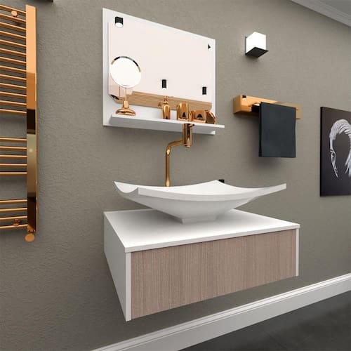 Gabinete Para Banheiro Com Cuba + Espelheira Madri 50 Cm Griggio - Branco