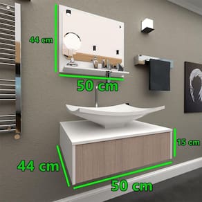 O Bancada Madri 50 Branco C/Cuba oferece um design moderno, com seus componentes fabricados em metal, tonalidade prateada. Este modelo é ideal para quem quer economizar sem deixar de adquirir artigos de luxo. É aplicável em banheiros e/ou lavabos, sua estética moderna e luxuosa oferece qualidade, resistência e praticidade. Produto: Conjunto Madri 50 Cômodo Indicado: Banheiros Local(is) Indicado(s): Banheiro/ Lavabos Marca: Gabinetto Linha: Luxo Produtos que compõem o Conjunto: 01 Bancada 01 Cuba Branca 01 Espelheira Borda Branca (COM ESPELHO) --------------------------------------------------------------------------------------------------------- MEDIDAS LAVABO/BANCADA: COMPRIMENTO: 50 CM ALTURA:15 CM PROFUNDIDADE: 44 CM --------------------------------------------------------------------------------------------------------- MEDIDA ESPELHEIRA: COMPRIMENTO: 50 CM ALTURA: 44 CM --------------------------------------------------------------------------------------------------------- PRATELEIRA: COMPRIMENTO: 45 CM PROFUNDIDADE: 9 CM CUBA: 41 X 35 CM --------------------------------------------------------------------------------------------------------- MATERIAL DO MÓVEL: MDF/ MDP --------------------------------------------------------------------------------------------------------- NÃO ACOMPANHA OS PARAFUSOS E BUCHAS, FICA A CRITÉRIO DO CLIENTE ADQUIRIR A MELHOR OPÇÃO PARA SUA PAREDE A BANCADA NÃO ABRE, NÃO É PORTA E NEM GAVETA, SE TRATA APENAS DE UM DETALHE NA BANCADA PORÉM TEMOS O MODELO MARANATA COM PORTA! --------------------------------------------------------------------------------------------------------- Instruções de Limpeza: Utilizar apenas pano umedecido com água e sabão neutro. ---------------------------------------------------------------------------------------------------------
