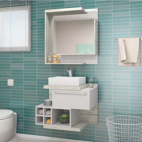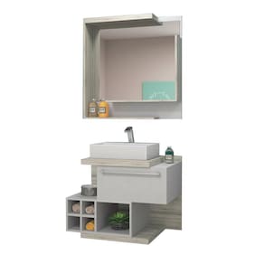 Ter o banheiro dos sonhos fica fácil com a mobília correta. Aliando elegância e praticidade, o Conjunto para Banheiro Lisboa não necessita de muito espaço para ser instalado, é fácil de limpar e dá um super \"up\" na decoração de qualquer banheiro. Possui um espelho de ótimo tamanho, nichos para armazenar toalhas e um armário para guardar sabonetes, shampoos e tudo o mais que se desejar. Inspirados nas novas tendências mundiais, agregando também ótima resistência, durabilidade e qualidade com muito requinte e beleza.rnNão acompanha cuba e torneira. Acabamento da Porta: Pintura Acompanha Cuba: Não Acompanha Tampo: Sim Ambiente: Banheiro Ambiente Principal: Banheiro codigo_ean: 7898528815151 Complexidade da Montagem: Média: pode ser montado por mais de uma pessoa e/ou necessite de maior conhecimento para montagem Cor: Nogal Griss/Branco Cor: Nogal Griss/Branco Cor Interna: Branco Escala de Brilho: Fosco Espessura do Espelho: 3 mm Itens Inclusos: 1 Espelheira, 1 Gabinete e Manual de Montagem. Manual de Montagem e Instalação: https://product-hub-prd.madeiramadeira.com.br/225422/documents/11c092aa-0378-4d2f-be71-5ce462a3cd48a05fc4449772gabinetelisboa.pdf Material da Porta: MDF Material do Puxador da Porta: Plástico Material do Tampo: MDF Material Principal: MDF Medida da Espelheira (A x L x P): 80cm x 80cm x 16cm Medida do Gabinete (A x L x P): 60cm x 80cm x 48cm Necessita Montagem: Não Peso: 53,15 kg Possui Espelho: Sim Possui iluminação: Não Possui Pés: Não Possui Portas: Sim Possui Prateleiras: Não Possui Rodízio: Não Produto Montado: Não Recomendações de Uso, Manutenção e Limpeza: Limpeza com pano úmido Tamanho do Espelho (A x L): 63,8cm x 76,8cm Tipo de Dobradiça/Corrediça da Porta: Metálica Tipo de Porta: Basculante Tipo de Puxador da Gaveta: Externo Tipo de Puxador da Porta: Externo Ean: 7898528815151