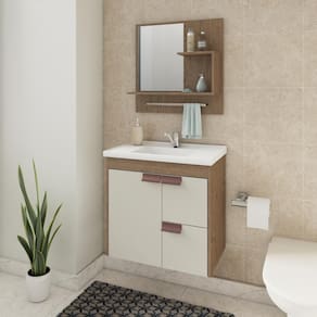 O Gabinete Para Banheiro Com Lavatório E Espelho Tulipa Amendoa E Off White MGM Móveis 59cm é perfeito para organizar e decorar seu banheiro. Suspenso, conta com uma porta, duas gavetas com corrediças telescópicas e espelheira com prateleiras e toalheiro em alumínio. A estrutura 100% MDF e o lavatório de mármore sintético garantem durabilidade e elegância. Ideal para otimizar o espaço. Confira na ABC da Construção e conheça o Gabinete Para Banheiro Com Lavatório E Espelho Tulipa Amendoa E Off White MGM Móveis 59cm, o armário/gabinete para banheiro ideal para sua casa!