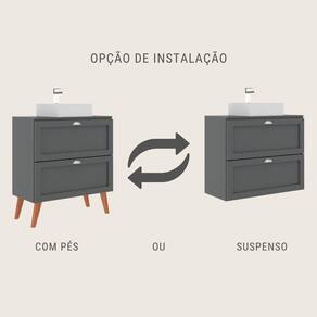 Conteúdo da embalagem01 Gabinete para banheiro com tampo01 kit de pés em madeira maciça01 Cuba de marmorite01 Espelho 80cmKit de ferragens para montagemManual de montagemObjetos decorativos, torneira e ralo NÃO acompanham o produto