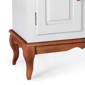 O Gabinete de Banheiro 80cm é a solução completa para seus desafios de armazenamento. Com uma portas, prateleira e nicho, ele oferece espaço amplo para guardar seus itens essenciais, mantendo tudo no lugar certo. Com o aéreo com espelho sua imagem é refletida com clareza, enquanto a sua porta garante um espaço especialmente para organizar seus itens pessoais. Produzidos em Madeira Maciça para tons amadeirado em verniz e MDF nos tons coloridos com acabamento laca, esse gabinete é sinônimo de qualidade e durabilidade. Além disso, possuí pés no estilo Luis XV, dando um toque clássico ao móvel.