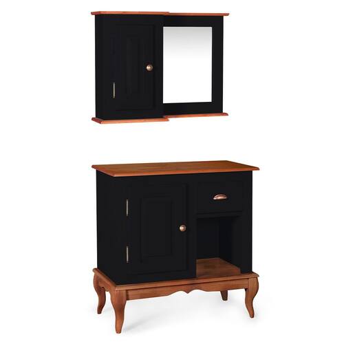 O Gabinete de Banheiro 80cm é a solução completa para seus desafios de armazenamento. Com uma portas, prateleira e nicho, ele oferece espaço amplo para guardar seus itens essenciais, mantendo tudo no lugar certo. Com o aéreo com espelho sua imagem é refletida com clareza, enquanto a sua porta garante um espaço especialmente para organizar seus itens pessoais. Produzidos em Madeira Maciça para tons amadeirado em verniz e MDF nos tons coloridos com acabamento laca, esse gabinete é sinônimo de qualidade e durabilidade. Além disso, possuí pés no estilo Luis XV, dando um toque clássico ao móvel.