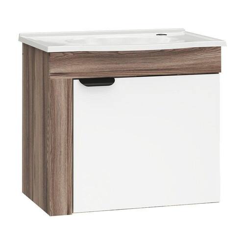 Gabinete Para Banheiro Em Madeira Jasmim Tamarindo Porta Branca - Cozimax O toucador em madeira para banheiro Jasmim, da Cozimax, é ideal para dar um toque de sofisticação aos ambientes pequenos. Fabricado com chapas de madeira, protegido por uma superfície melamínica, possui lavatório em mármore sintético com linhas curvas, espaço interno para guardar os produtos de higiene e limpeza, puxador em aço com formato minimalista.