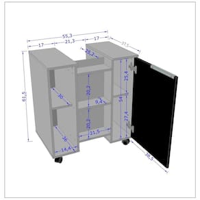Possui 4 rodízios e 1 porta e 3 nichos.