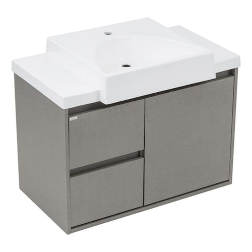 Este gabinete para banheiro na cor grigio oferece uma combinacao perfeita de estilo e funcionalidade. Fabricado em MDF, um material conhecido por sua durabilidade e resistencia, possui dimensoes de 54 cm de altura, 78 cm de largura e 42 cm de profundidade, enquadrando-se na categoria de moveis medios. O modelo Valentina vem equipado com uma cuba de sobrepor, ideal para otimizar o espaco e adicionar um toque de elegancia ao ambiente. Conta com tres portas de abrir, proporcionando facil acesso e organizacao dos itens armazenados. Este produto e entregue montado, facilitando a instalacao e uso imediato. Para manutencao, recomenda-se limpeza com pano umedecido e detergente suave, garantindo a preservacao e longevidade do movel. Importante ressaltar que nao acompanha espelho nem tampo, permitindo personalizacao conforme o gosto e necessidade do usuario. Certificado pelo Selo FSC(r), assegura que o material provem de fontes responsaveis, reforcando o compromisso com a sustentabilidade.