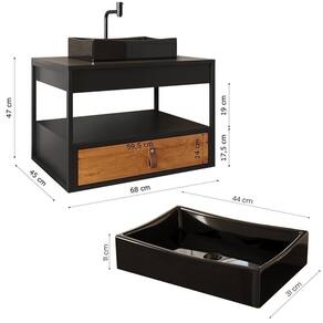 Marca: Loja DoceLar | Altura: 47 cm | Largura: 68 cm | Comprimento: 45 cm | Altura Embalado: 36,5 | Largura Embalado: 48 | Comprimento Embalado: 72 | Peso: 22,17 kg | Peso Embalado: 22,17 | Estado de Origem: SP | Modelo: Gabinete Harley 1G e Cuba Dalla Preta | Material: MDP de 15 mm e aço | Tonalidade: Multicolorido | Garantia em meses: 3 meses de garantia para defeitos de fabricação | Descrição do Tamanho: 47 x 65 x 45 cm | Com portas: Não | Fonte do produto: Loja DoceLar | Linha: Banheiro | Cor da pia: Preta | Quantidade de furos para torneira: Sem furos | Profundidade: 45 cm | É kit: Sim | Condição do item: Novo | Tipo de armário para banheiro: Para pendurar | Quantidade de portas: 0 | Com rodas: Não | Materiais do móvel: MDP de 15 mm e aço | Com gavetas: Sim | Material da pia: Mármore sintético | Quantidade de gavetas: 1 | Inclui espelho: Não | Inclui pia: Sim | Inclui torneira: Não | Precisa de baterias ou pilhas (areBatteriesRequired): Não | Regulamentações aplicáveis a produtos perigosos (supplierDeclaredDGHZRegulation): Não se aplica Cor: Preto/Preto/Canela