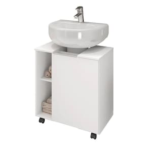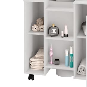 O Gabinete é ideal para lavatórios com coluna, permitindo que fique posicionado abaixo do lavatório. Além disso, o Gabinete possui 4 Rodízios para fácil movimentação, 6 Nichos e 1 Porta com Dobradiças Metálicas. é produzido em MDP de 12mm. Acabamento em Verniz Poliéster Brilhante com secagem UV e Impressão a Laser.