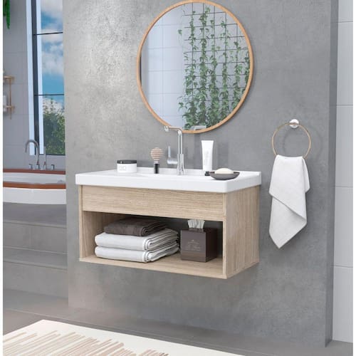 Itens Inclusos: 1 Gabinete de Banheiro, 1 Pia e 1 Kit de Montagem. * Não acompanha espelho.