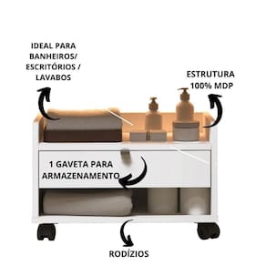 Gabinete Armário, Banheiro, Rodízios, Branco, Gaveta Prisma, JM3, MDP, Moderno, Elegante, Organização, Durabilidade, Montagem, Móvel