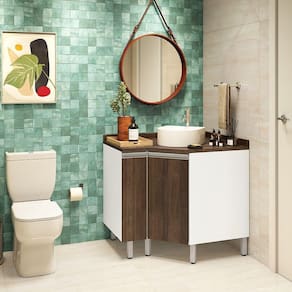 Gabinete Para Banheiro Sem Furação Suprema Branco Com Nogueira Dourado Luciane Móveis Branco Polar Com Nogueira Dourado Gabinete para Banheiro sem Furação Suprema Branco com Nogueira Dourado Luciane Móveis Organize seu Banheiro com muita facilidade e praticidade.