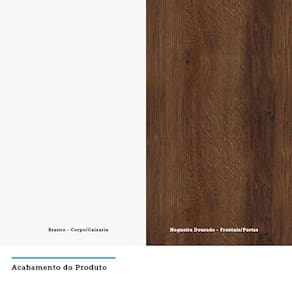 Características: Corpo/Caixaria: MDP - Branco - F.F. Frontais: MDP - Nogueira Dourado - BP. Dobradiças: 35mm. Puxadores: Alumínio Gola Pés: P S - Cromado. Montagem com Minifix, Parafusos e cavilhas. Itens incluso: manual de montagem, ferragens e acessórios para montagem.
