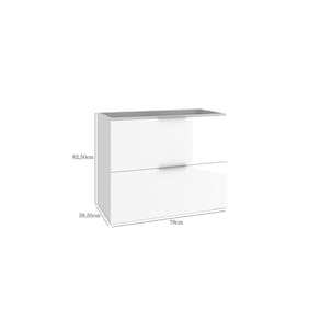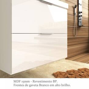 Gabinete para banheiro sem tampo em MDF 15mm. Balcão de 80cm com 02 gavetas externas e 01 gaveta oculta com divisórias (ideal para acomodação de pequenos objetos como maquiagem). Corrediças telescópicas que permitem a extração total da gaveta. 02 Puxadores externos estilo perfil em alumínio. Instalação aérea. Não acompanha pés. Ideal para colocação de lavatórios ou tampo em mármore. Produto já enviado montado com acessórios para instalações. "Objetos e acessórios decorativos não acompanham produto."
