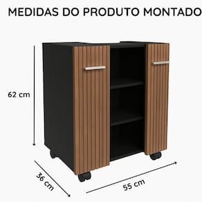 Observações: - Produzido em MDP/MDF; - Porta articulada; - Dobradiças metálicas; - Possui prateleiras dentro das portas; - Pintura ultravioleta; - Possui 4 Rodízios para facilitar a locomoção quando necessário.