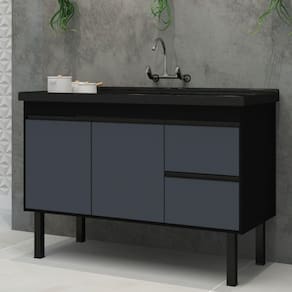 Características: Largura: 1,14m (ideal para pia de 1,20m) Cor: Preto e Cinza Material: MDF de alta qualidade Puxadores: Plástico Design moderno e clean não acompanha pia, torneira e outros acessórios.