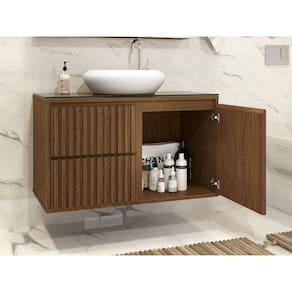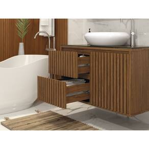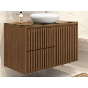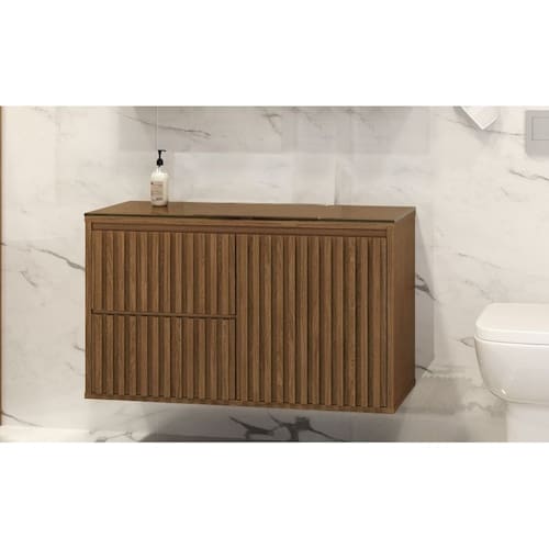Gabinete Ripado 80 Com Tampo de Vidro Sem Cuba Cor: Marrom