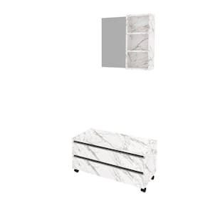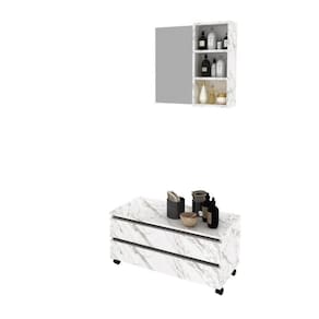 Quando falamos de banheiro pensamos em bem-estar. Pois o banheiro é onde a gente recarrega nossa energia vital, idealiza sonhos, e realiza toda a manutenção necessária para uma saúde física e mental. Com design prático, o móvel entrega ao ambiente toques de modernidade e elegância. Funcional, acondiciona produtos de higiene e beleza, porta escova, papel higiênico, toalhas, artigos de limpeza, entre tantos outros objetos pessoais. Balcão Gabinete com rodízio para Banheiro BN3603. Possui duas gavetas com amplo espaço. Estrutura em MDP e acabamento em pintura UV. Não acompanha cuba. Imagem meramente ilustrativa. A decoração do ambiente não acompanha o produto. Produto, acompanha nota. O produto será entregue desmontado. Altura do Conjunto: 54 cm Ambiente: null Ambiente Principal: Banheiro Cor: Branco Informação Complementar: 1x Gabinete para Banheiro com Rodizios 80cm 2 Gavetas BN3603 Mármore BrancoLargura: 80Altura: 38Peso: 14.75Profundidade: 38.7Necessita Montagem: Sim1x Espelheira para Banheiro 3 Nichos BN3609 Mármore BrancoLargura: 60Altura: 54Peso: 7.65Profundidade: 15.6Necessita Montagem: Sim Material Principal: MDP Possui Portas: Não
