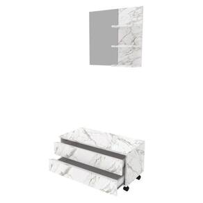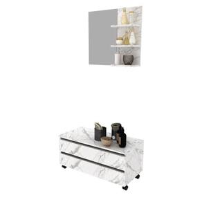 Quando falamos de banheiro pensamos em bem-estar. Pois o banheiro é onde a gente recarrega nossa energia vital, idealiza sonhos, e realiza toda a manutenção necessária para uma saúde física e mental. Com design prático, o móvel entrega ao ambiente toques de modernidade e elegância. Funcional, acondiciona produtos de higiene e beleza, porta escova, papel higiênico, toalhas, artigos de limpeza, entre tantos outros objetos pessoais. Balcão Gabinete com rodízio para Banheiro BN3603. Possui duas gavetas com amplo espaço. Estrutura em MDP e acabamento em pintura UV. Não acompanha cuba. Imagem meramente ilustrativa. A decoração do ambiente não acompanha o produto. Produto, acompanha nota. O produto será entregue desmontado. Altura do Conjunto: 54 cm Ambiente: null Ambiente Principal: Banheiro Cor: Branco Informação Complementar: 1x Gabinete para Banheiro com Rodizios 80cm 2 Gavetas BN3603 Mármore BrancoLargura: 80Altura: 38Peso: 14.75Profundidade: 38.7Necessita Montagem: Sim1x Espelheira para Banheiro 3 Prateleiras BN3608 Mármore BrancoLargura: 60Altura: 54Peso: 6.2Profundidade: 15.6Necessita Montagem: Sim Material Principal: MDP Possui Portas: Não