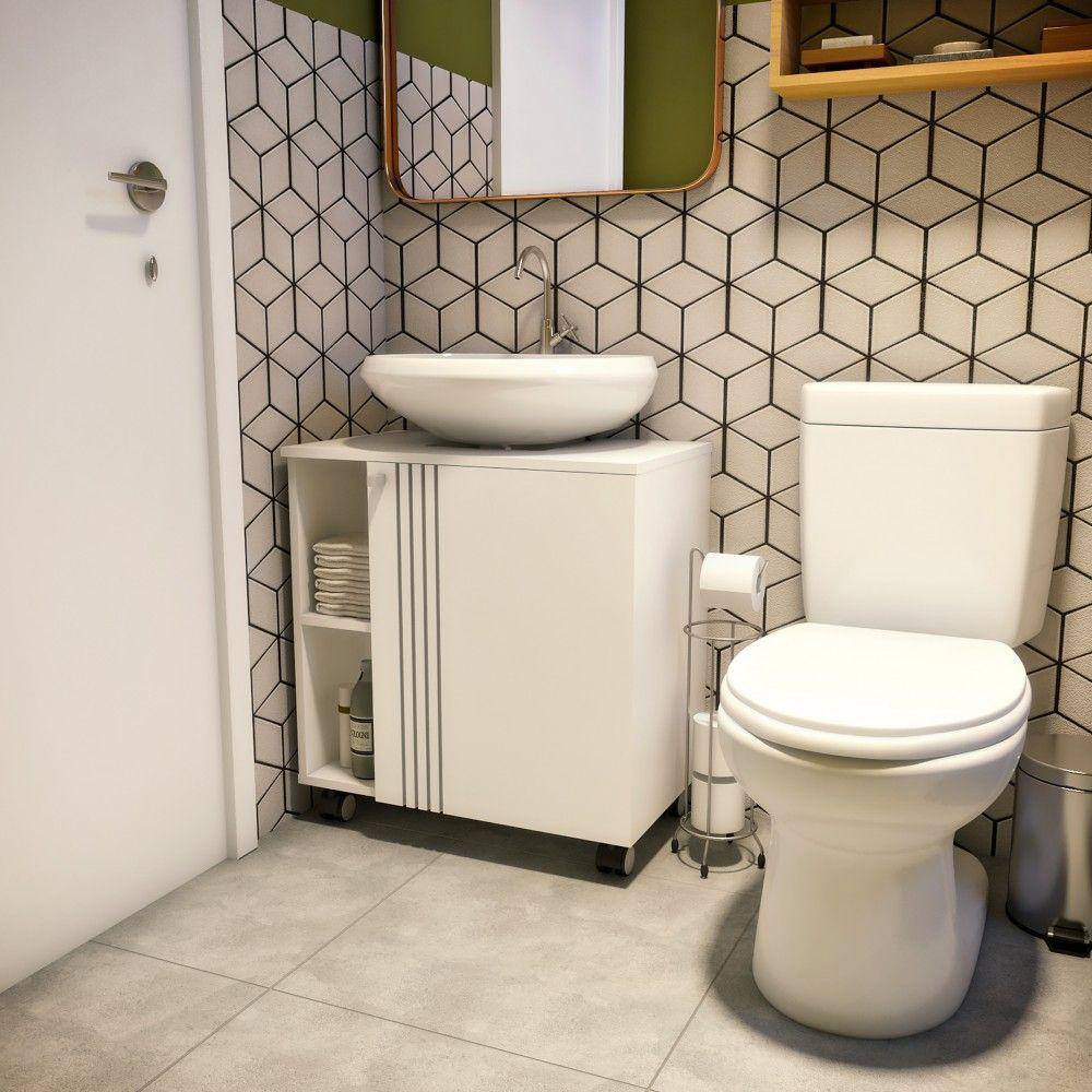 Gabinete Banheiro Suspenso 2 Portas Branco Em Mdf