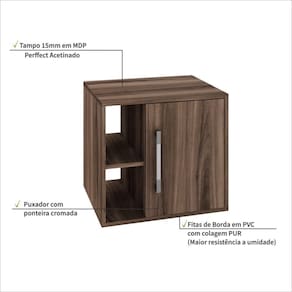 Gabinete Soft 500 Perffect Acetinado Nogal Sobre o ProdutoGabinete Soft 500 Perffect AcetinadoDescrição do Produto:O Gabinete Soft 500 GTSF500 possui 01 porta e prateleira lateral, tem design compacto, perfeito para pequenos espaç linha Basic traz móveis funcionais e de design tradicional, aliando simplicidade e estilo para seu ambiente de banheiro!Itens Inclusos:1 GabineteDimensões dos Produtos:Gabinete Soft 500 Perffect Acetinado: 50 x 40 x 45 cmInformações Logísticas (Comp. X Prof. X Alt.) 54 x 42 x 28 cm - Peso: 12,125 KgPeso Total: 12,125 KgObservações:Não acompanha acessórios decorativos. Imagens meramente ilustrativas.Informações Técnicas / Características:- Cor do Produto: Perffect Acetinado - Marca: Compace- Modelo: GTSF500- Linha: Basic- Material: Mdp - Acabamento: Perffect Acetinado- Escala de Brilho: Fosco- Fita de Borda: Pvc c/colagem PUR- Possui Portas: 1- Tipo de Porta: Bater - Material do Puxador: Abs- Possui Prateleiras: 1- Peso Máximo por Prateleira: 3 kg- Possui Pés: Não, suspenso - Furação para Cuba / Lavatório: Não - Suporta Até (kg): 15 kg- Comprimento: 50cm- Profundidade: 40cm- Altura: 45cm - Peso Lí.: 10,98Kg- Recomendações de Uso, Manutenção e Limpeza: Para a limpeza, utilize flanela seca ou pano macio levemente umedecido em água. Utilize um pano seco em seguida. Evite com produtos químicos (solventes, thinner, acetona, etc) e não utilize nenhum tipo de esponja de aço.- Necessita de Montagem: Sim / Acompanha Manual de Montagem- Complexidade da Montagem: Média: pode ser montado por mais de uma pessoa e/ou necessite de maior conhecimento para montagem.- Garantia: 6 meses Material: Mdp | Acabamento: Perffect Acetinado | Escala de Brilho: Fosco | Fita de Borda: Pvc | Possui Portas: 1 | Tipo de Porta: Bater | Tipo da Dobradiça: Metálica | Comprimento: 50 | Limite de unidades por venda: É possível comprar até 1 unidade por venda. | Quantidade máxima de pedido: 1 | Largura: 40 | Altura: 45 | Profundidade: 40 | Preço Tabelado: | Cor: Multicolorido | Certificação de teste externa: Não Aplicável | Baterias são necessárias?: false | Palavras-chave de Pesquisa: Não aplicável | Fonte de energia: Não aplicável | Fabricante: Compace | da peça: | Is Fragile: | Exige montagem: | Peso do item: | Dimensões do item P x L x A: | Principais Características do Produto 0: | Principais Características do Produto 1: | Principais Características do Produto 2: | Componentes incluídos: | de caixas: | Quantidade de itens: | do modelo: Cor: Nogal