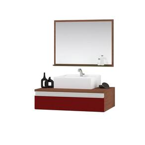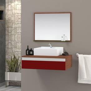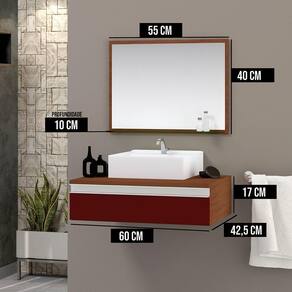 AS IMAGENS SÃO MERAMENTE ILUSTRATIVAS E PODEM SOFRER VARIAÇÕES DE COR E PEQUENOS DETALHES DE ACORDO COM O SEU MONITOR, ILUMINAÇÃO DO AMBIENTE E ATÉ MESMO A SUA PERCEPÇÃO VISUAL.Gabinete Superior 60cm 1 Gaveta Safira com Espelheira - Vinho