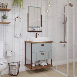 Gabinete Suspenso com Cuba 02 Gavetas e Espelheira Uni Pistache MGM - Azul Bebê