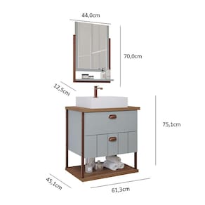 Gabinete Suspenso com Cuba 02 Gavetas e Espelheira Uni Pistache MGM - Azul Bebê