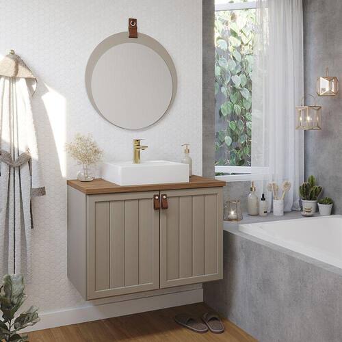 Características: Estrutura em MDF Acabamento em Pintura UV Puxadores e alça em couro 02 Portas Dobradiças metálicas Acompanha cuba em mármore sintético Acompanha espelheira