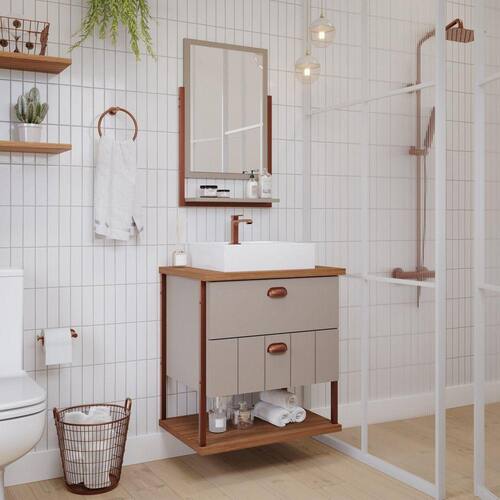 Gabinete Suspenso com Cuba e Espelheira 60cm Olivia Espresso Móveis Cappuccino - Bege